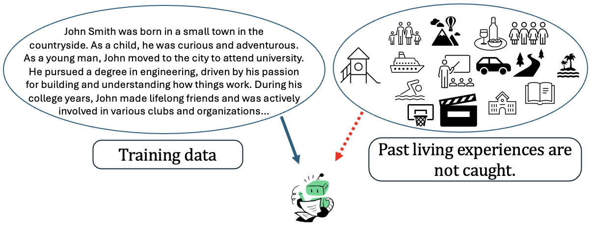 One foundational approach is to incorporate data that reflects a broader spectrum of human psychological states, personal thoughts, and lived experiences. While current LLMs are trained on general information from diverse sources, this data often lacks depth in representing individual cognition and emotional states. Adding more personalized content, such as reflective diaries or first-person narratives that capture inner motivations, fears, and aspirations, could help the model simulate more realistic human behaviors. Incorporating varied life experiences can also create a richer model that better captures how past events influence decision-making and personality development over time. Personalized LLMs represent a promising direction for simulating more realistic human behaviors by incorporating concrete life experiences and individual psychological profiles